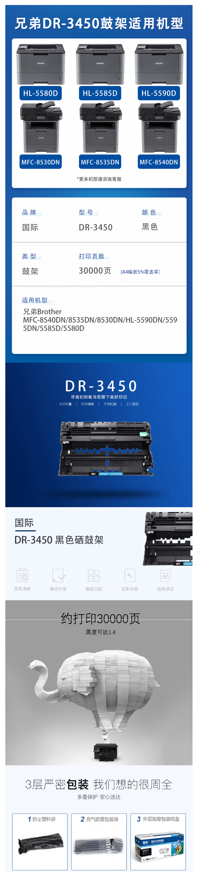 国际 DR3450硒鼓组件(适用兄弟 HL-5580D/HL-5585D/5590DN/MFC-8535DN/8530DN/8540DN)