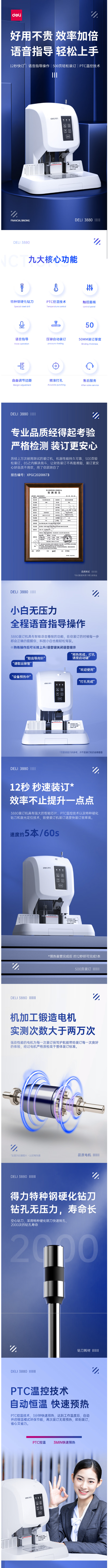 得力(deli)3880 激光定位财务凭证自动装订机 标书文案卷宗电动档案打孔机
