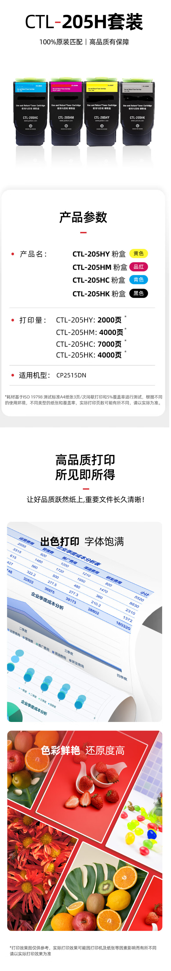 中性CTL-205/C/M/Y原装标准容量粉盒彩色 适用CP2505DN金光红版打印机单只装(青、红、黄备注)