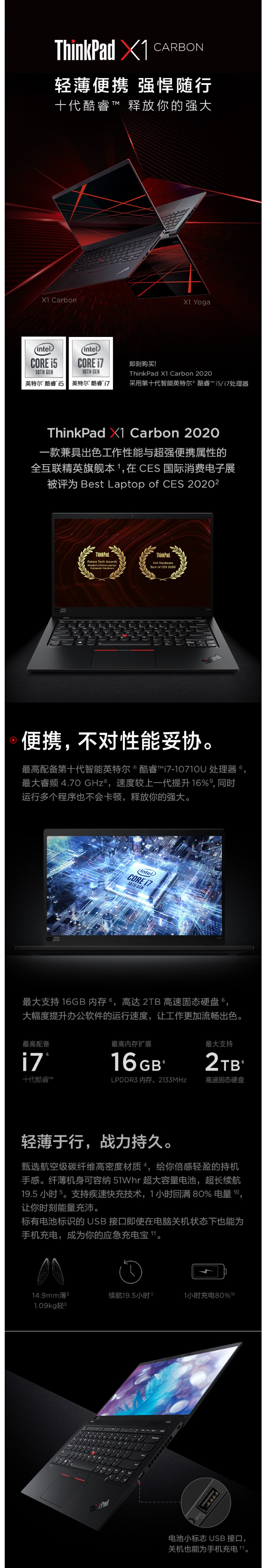 ThinkPad X1 Carbon 2022 14英寸高端轻薄本超级本联想笔记本 I5-10210U/16G/512G