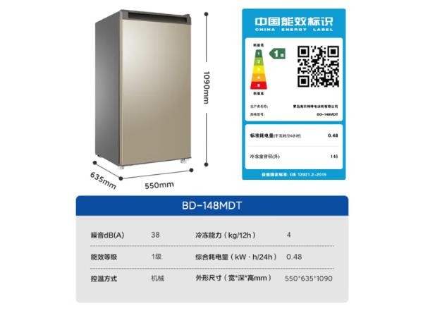 海尔(Haier)148升匀冷家用立式冰柜 母乳冷冻柜抽屉式冷柜囤货小冰柜家用小型冰箱BD-148MDT 以旧换新