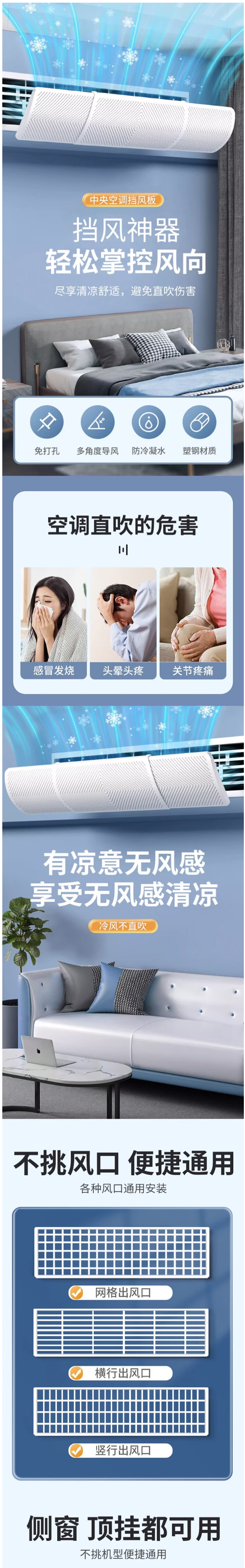 中央空调挡风板风管机出风口遮风板格栅挡板防直吹冷气导风罩. 侧窗通用款