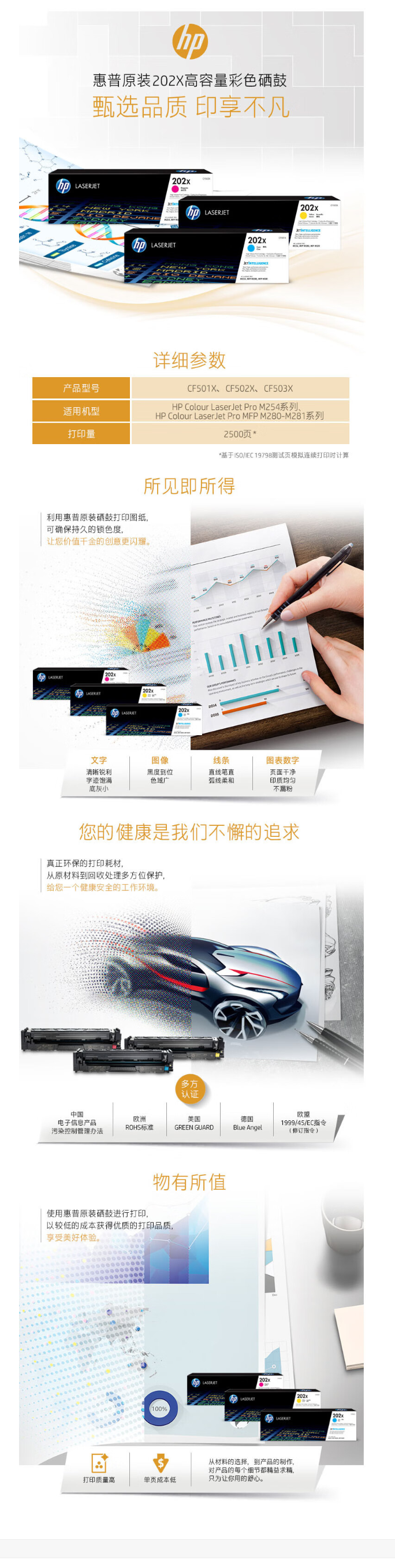 惠普(HP)202X(CF502X)原装硒鼓黄色单支装(适用hp m281fdw/254dw/254NW/280NW/281FDN)打印页数2500