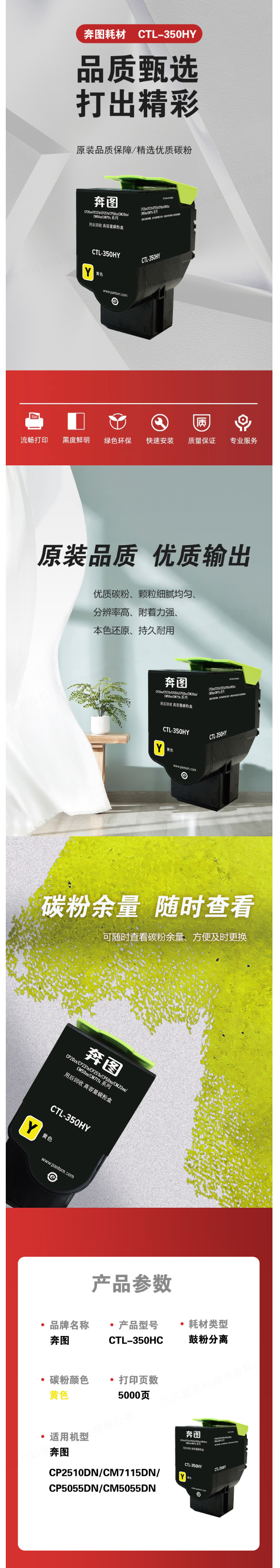 奔图黄色墨粉盒大容量CTL-350HY适配奔图打印机 CP2510DN/CM7115DN/CP5055DN/CM5055DN 打印容量5000页