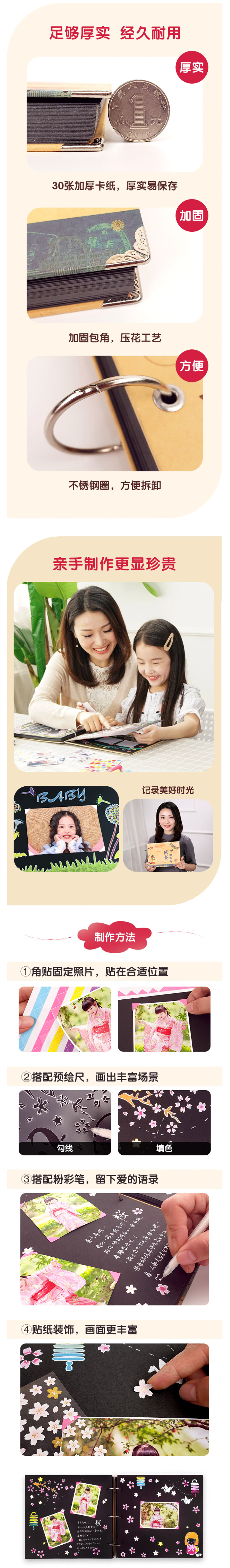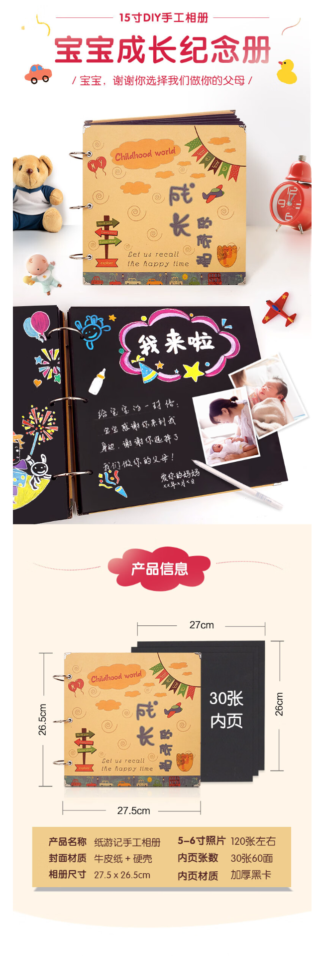 15寸diy幼儿园小学生宝宝成长记录册定制儿童毕业自制手工相册本 $15寸成长的旅程 30张黑卡