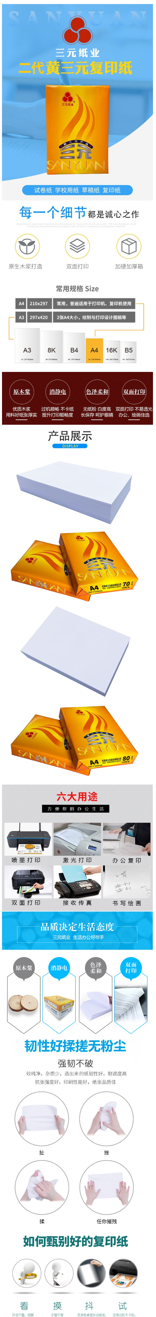 三元 多功能复印纸 打印纸 草稿纸 档案纸 练习纸500张一包 10包/5000张