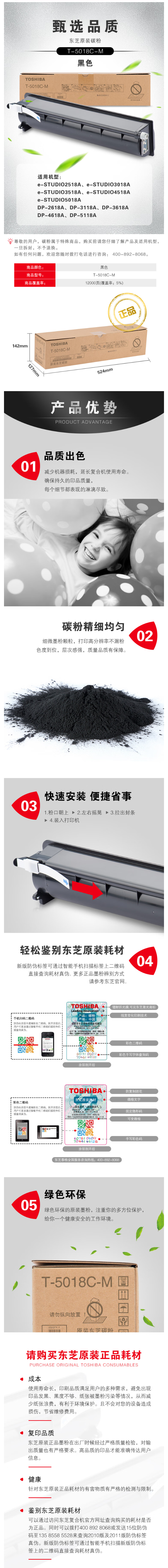 东芝(TOSHIBA)T-5018C-M黑色原装低容墨粉盒(适用e-STUDIO 2518A 3018A 3518A 4518A 5018A)