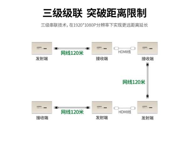 绿联(UGREEN) HDMI延长器120米 hdmi转RJ45网口转换器 单网线高清网络传输信号放大连接器 发射端