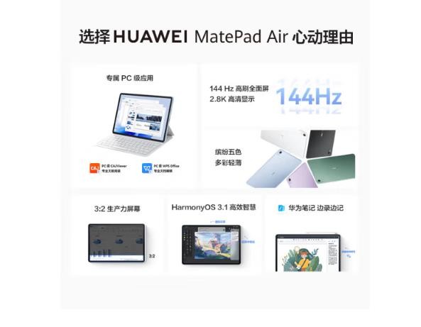 华为平板电脑MatePad Air 11.5英寸 144Hz高刷护眼全面屏 2.8K超清移动办公影音平板 12+512GB LTE版曜石黑