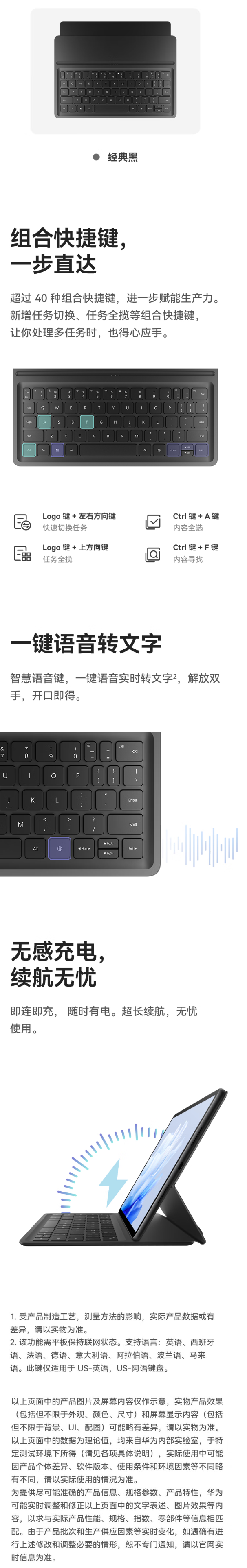 华为(HUAWEI)智能磁吸键盘 经典黑色 【适用于HUAWEI MatePad Air 】
