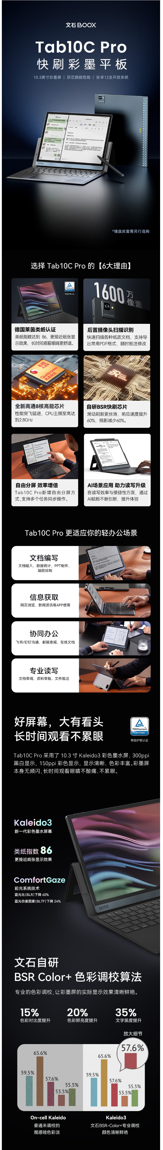 文石BOOX Tab10C Pro10.3英寸彩色墨水屏电子书阅读器 高刷智能办公本 大屏电纸书电子纸高刷平板 语音转文字