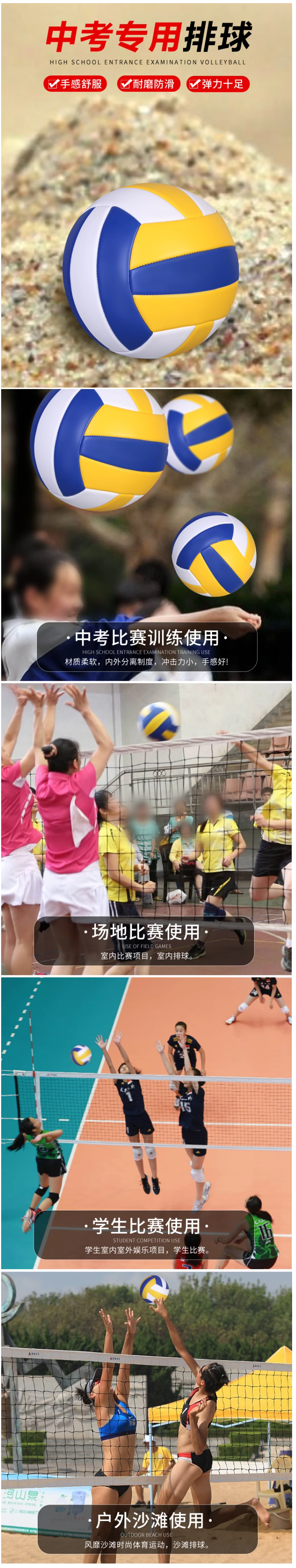 排球中考学生专用5号初中生训练比赛4号儿童小学生软式充气硬排球兰黄白5号