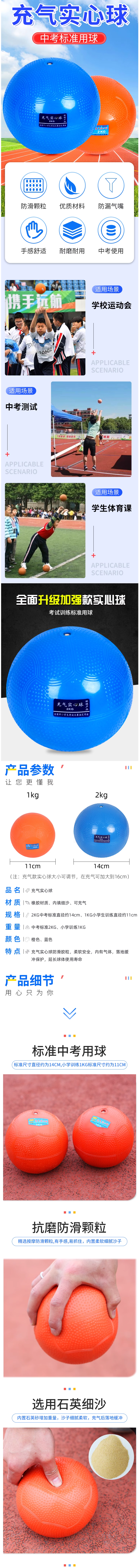 实心球中考专用男女2kg标准体育考试小学生练1kg充气实心球2公斤