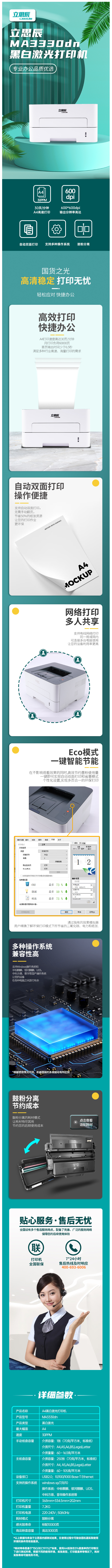 立思辰(LANXUM) MA3330dn 国产打印机 A4幅面黑白激光打印机 自动双面打印 网络打印