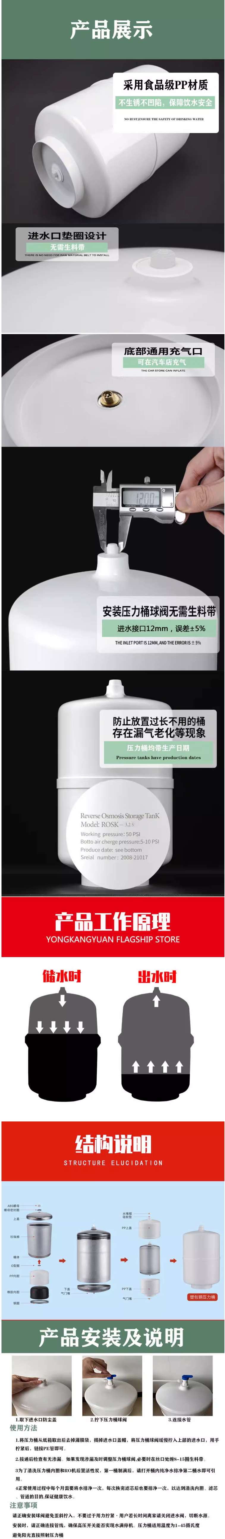 来克斯净水器压力桶储水罐11G净水机储水桶