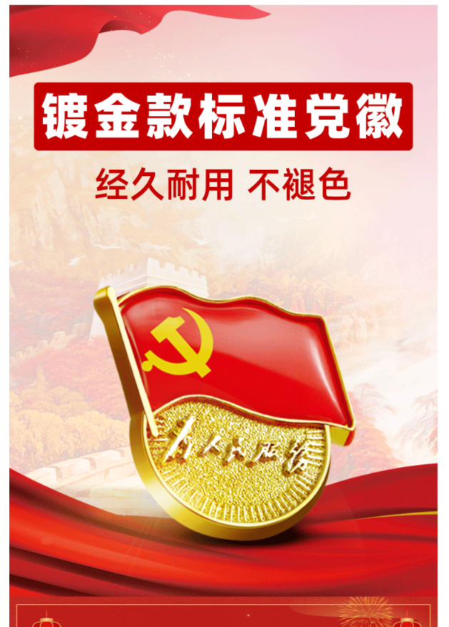 优和(UHOO)标准党徽胸章 别针磁扣蝴蝶扣为人民服务党员徽章 双磁扣(10个)装厚2mm 0244