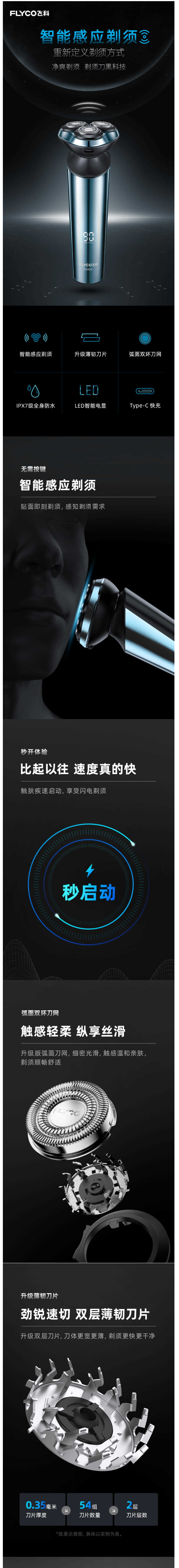 飞科(FLYCO)剃须刀 电动男士刮胡刀 全身水洗智能充电式胡须刀FS926