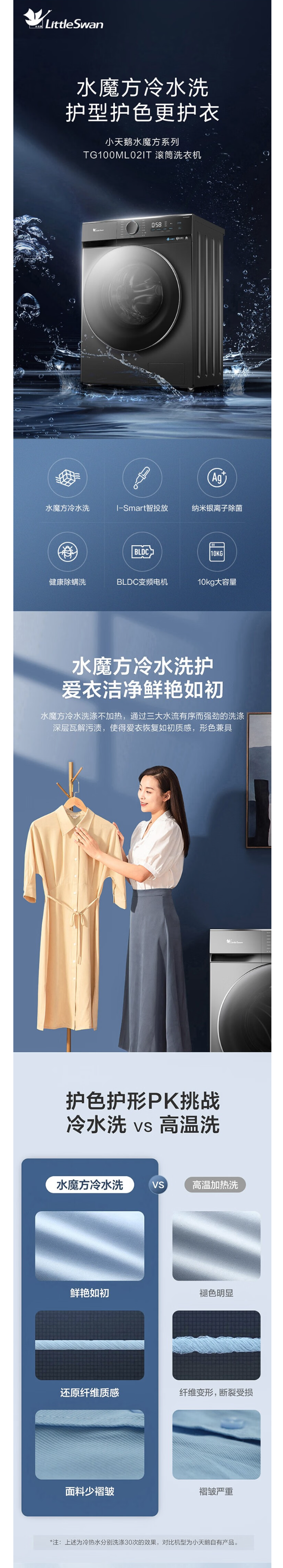 小天鹅水魔方冷水洗 智能投放 纳米银离子除菌 10kg大容量洗衣机 TG100ML02IT