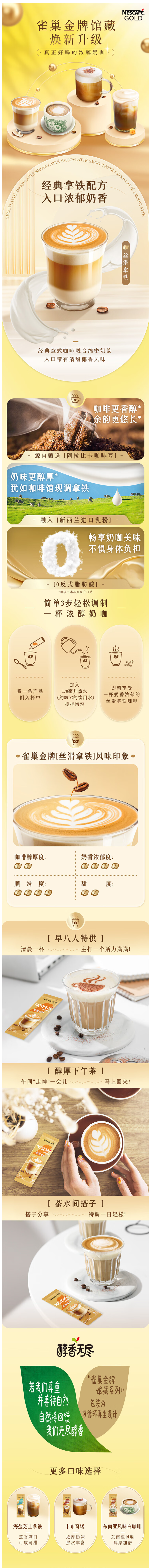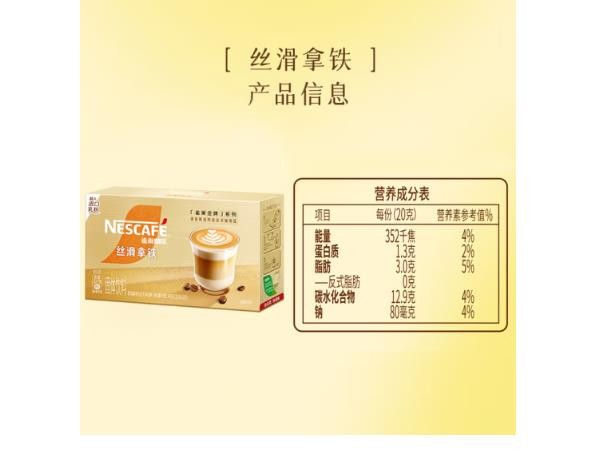 雀巢(Nestle)咖啡 金牌馆藏 丝滑拿铁 速溶奶咖 冲调饮品 盒装20gX20条