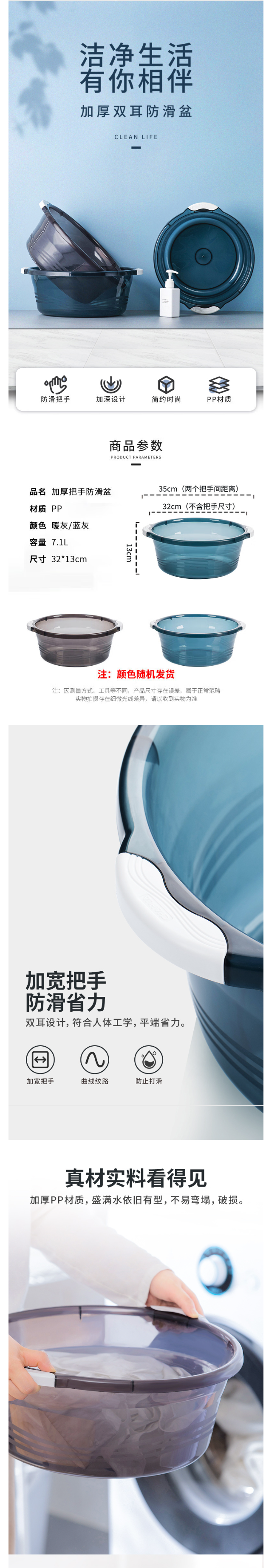 茶花洗脸盆大号32cm洗脚盆洗衣盆加厚透明塑料盆