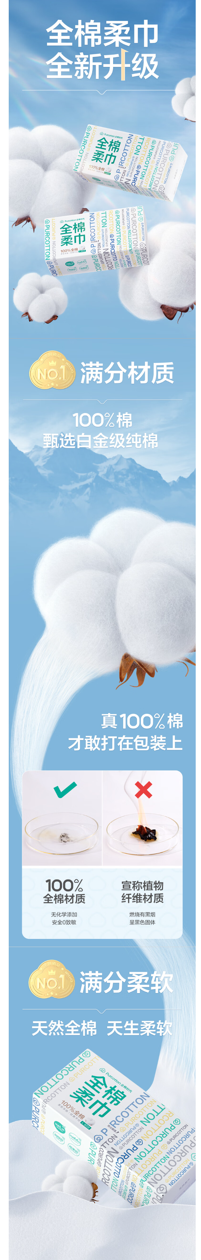 全棉时代 洗脸巾 棉柔巾洁面巾毛巾干湿两用擦脸巾盒装卫生纸巾80抽/盒