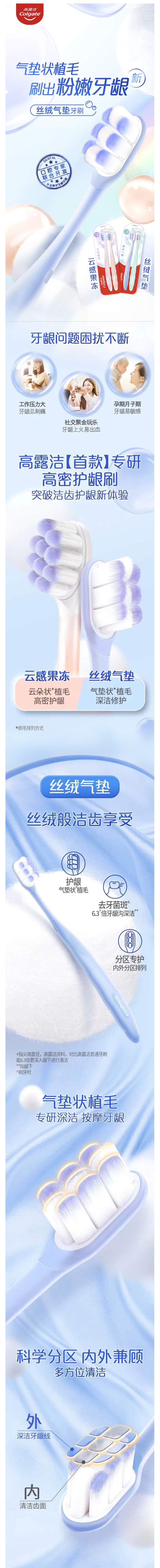高露洁(Colgate)丝绒气垫成人软毛牙刷单支装 气垫状植毛 深洁修护 按摩牙龈