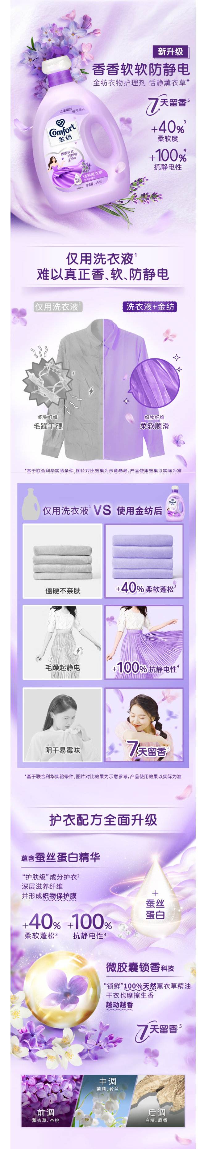 金纺衣物柔顺剂护理剂 香香软软防静电 恬静薰衣草4KG+4KG
