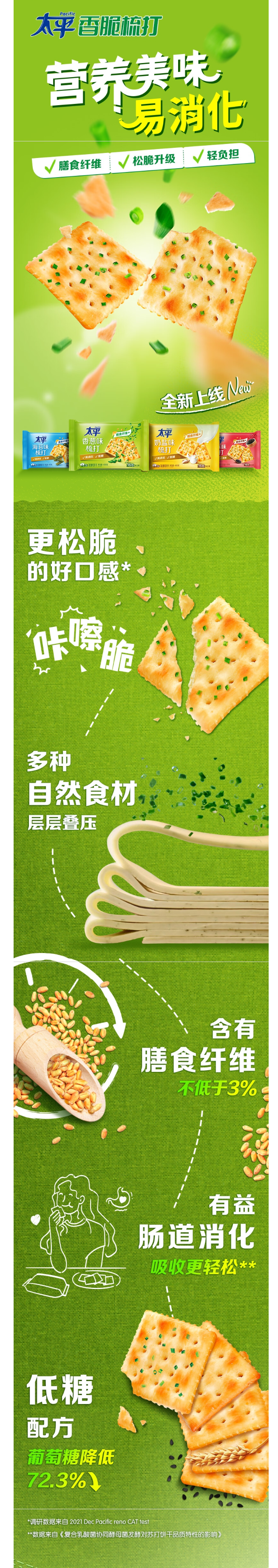 太平 苏打饼干 低糖酵母 香葱味 易消化含膳食纤维 400g (包装随机)