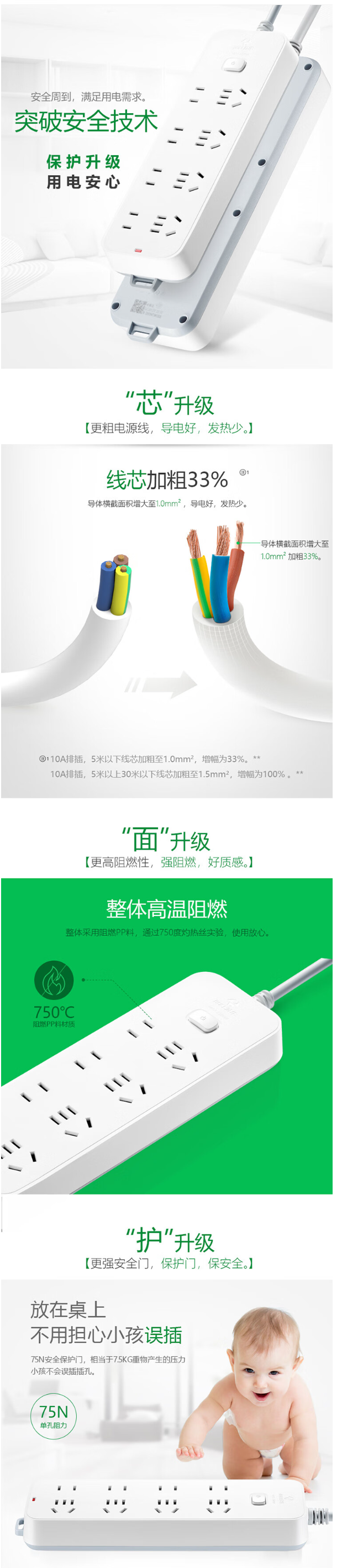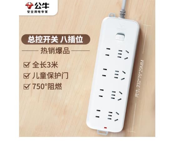 公牛(BULL)插座/插线板/插排/排插/接线板/拖线板 8位总控全长3米 GN-B3440