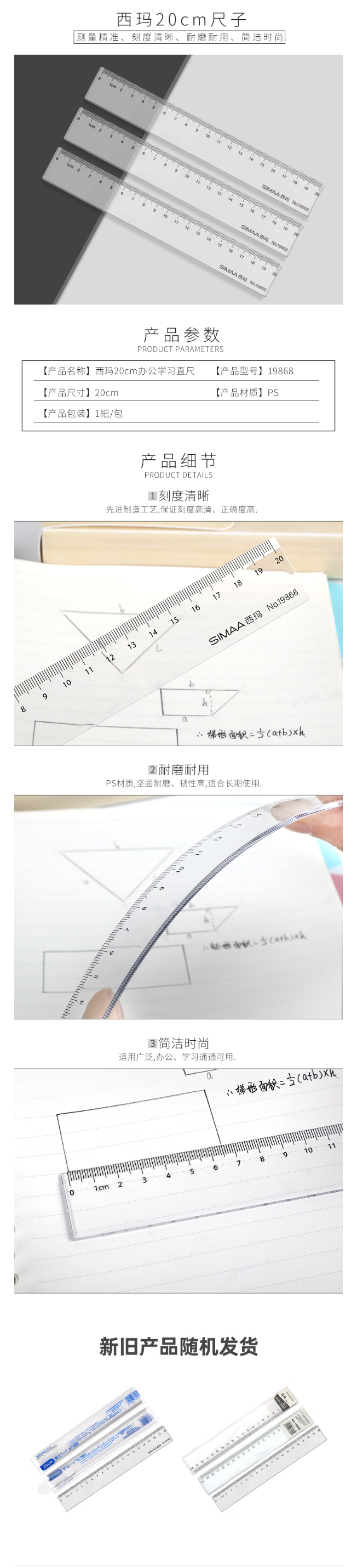 西玛(SIMAA)20cm办公尺子 通用直尺 学生文具测量绘图尺 19868