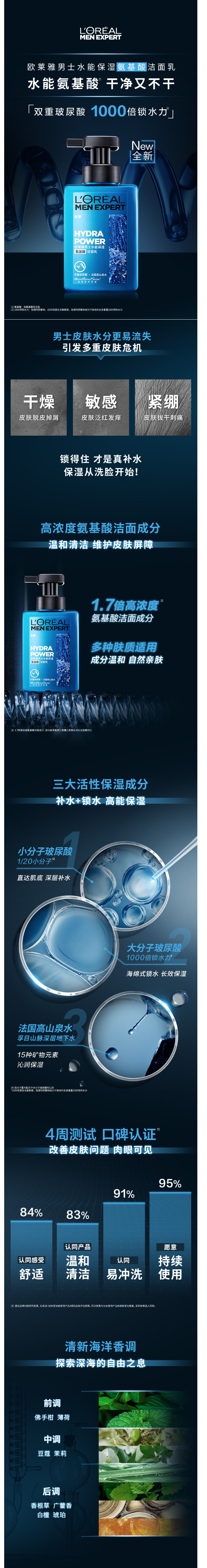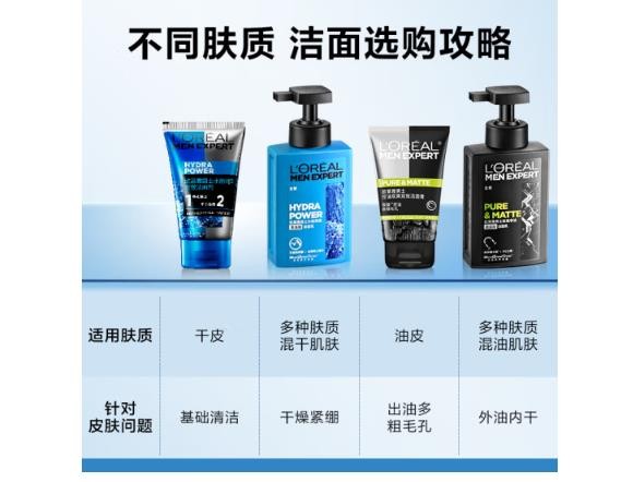 欧莱雅男士水能保湿氨基酸洗面奶洁面乳180ml锁水不紧绷护肤品男