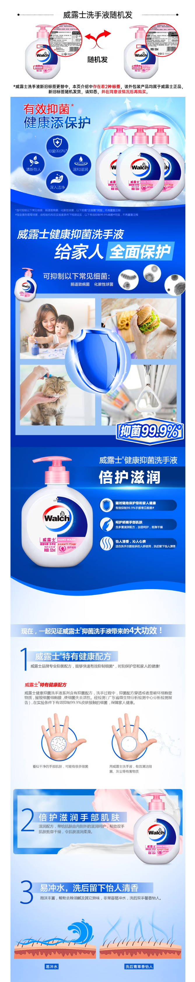 威露士健康抑菌滋润洗手液525mlx3大瓶 杀菌99.9% 泡沫丰富冲洗护手保湿