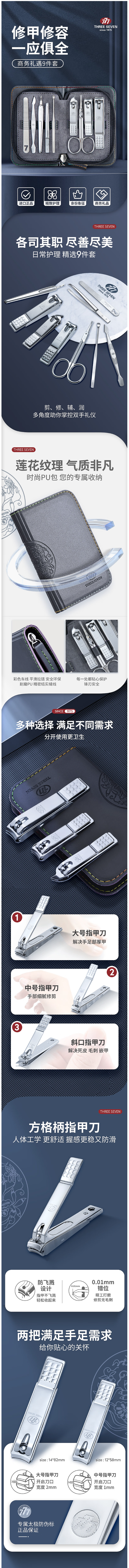 777(THREE SEVEN)指甲刀套装指甲剪 指甲钳 耳勺指甲锉镊子护理工具9件套
