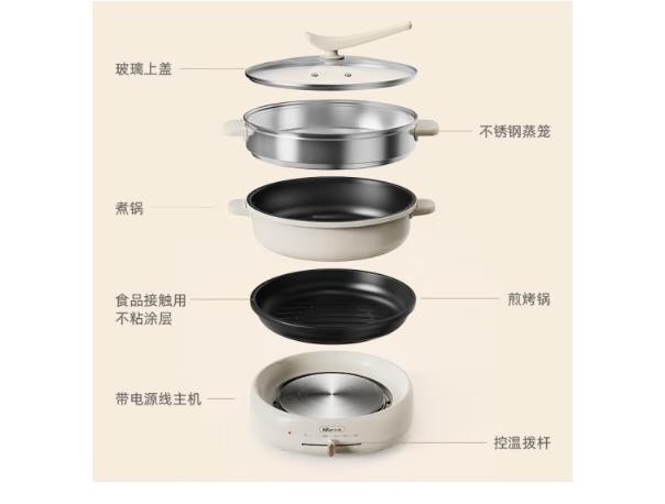 小熊(Bear) 电火锅电蒸锅电煮锅多功能锅一锅多用分体式可拆洗家用电热锅料理涮肉锅火锅专用锅蒸煮一体锅 【煮烤蒸三合一】DHG-C40W2