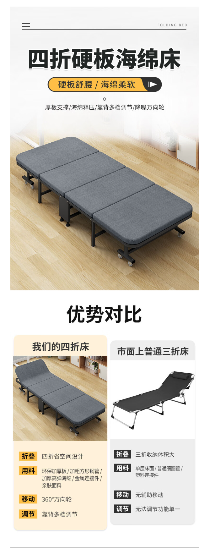 曙亮折叠床单人午休躺椅办公室便携式行军床午睡床宽70CM