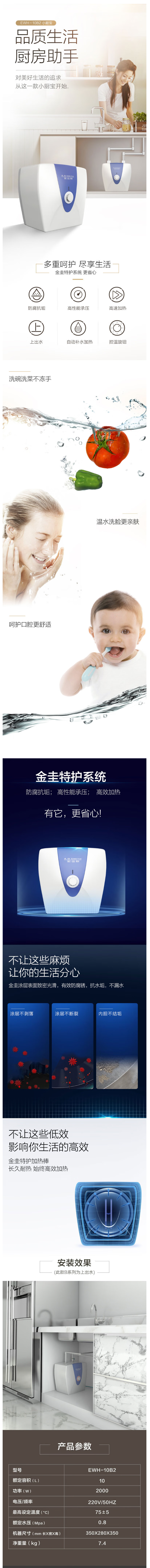 史密斯(A.O.SMITH)10升小厨宝 金圭内胆电热水器 2kW速热节能保温 台盆下方安装 上出水 EWH-10B2 储水式