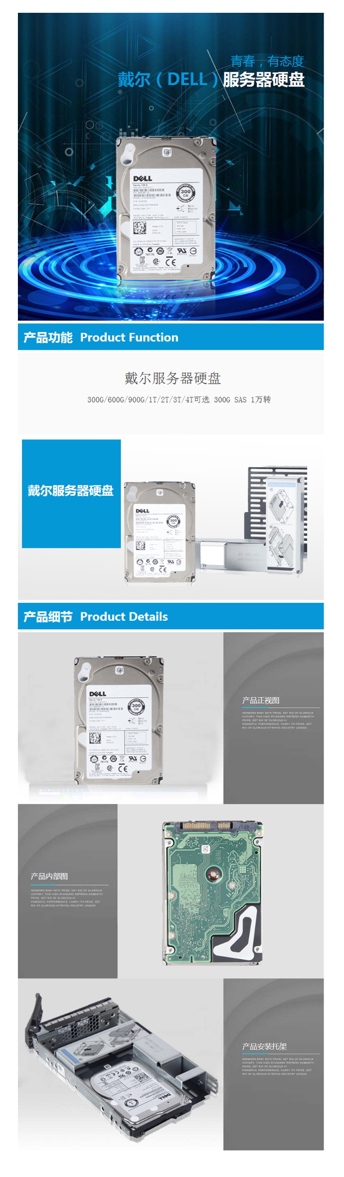 戴尔(DELL) 服务器硬盘 SAS/300G/600G/900G/1T/2T/3T/4T 300GB SAS 15K RPM 2.5英寸