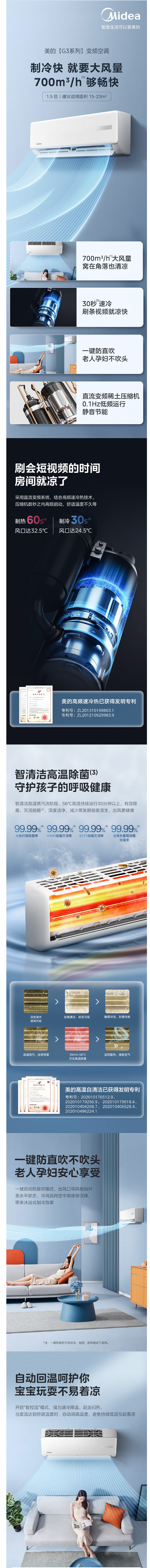 美的(Midea)空调1.5匹挂机 变频冷暖 独立除湿 壁挂式 卧室书房空调挂机 KFR-35GW/G3-3