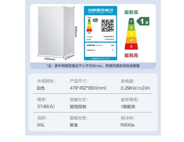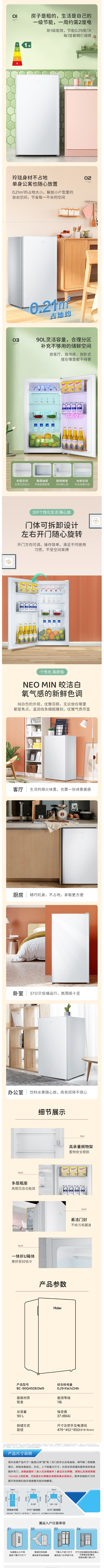 海尔(Haier)90升小型中型迷你单门冰箱一级能效黑金净化家用宿舍小型单门冷藏节能省电海尔BC-90GHSDE0W9