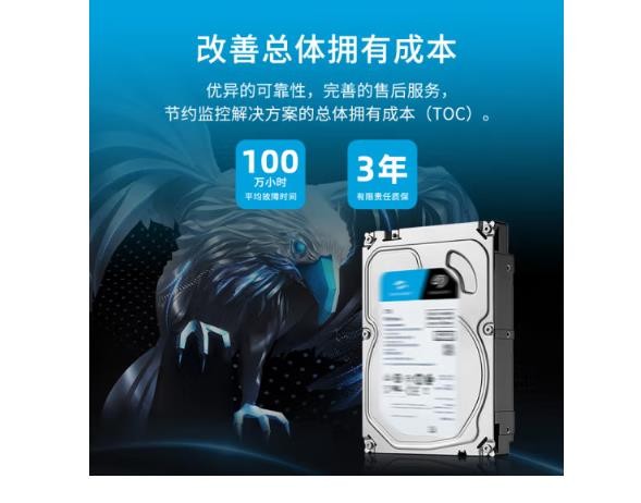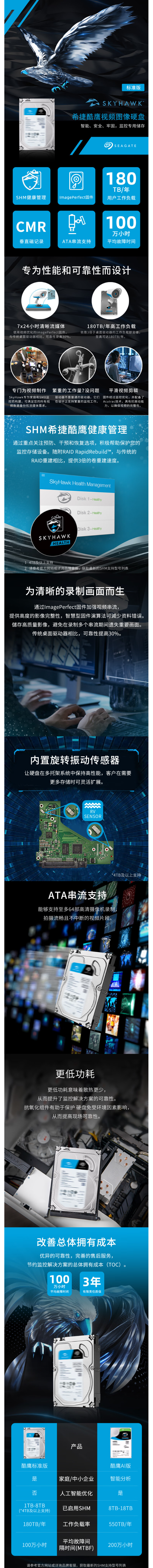 希捷(Seagate)监控硬盘8TB 256MB SATA 垂直 机械 PMR CMR 希捷酷鹰SkyHawk ST8000VX010