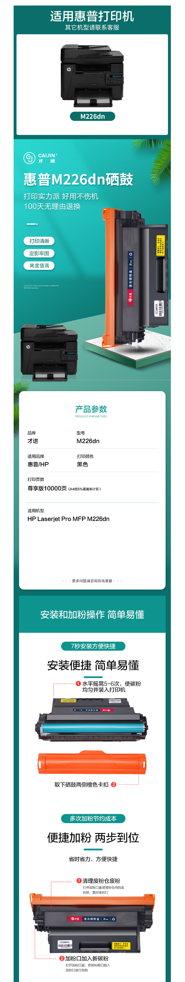 才进适用惠普M226dw硒鼓HP Laserjet Pro MFP M226dn激光打印机墨盒原装黑白复印一体机墨粉盒m226专用碳粉盒