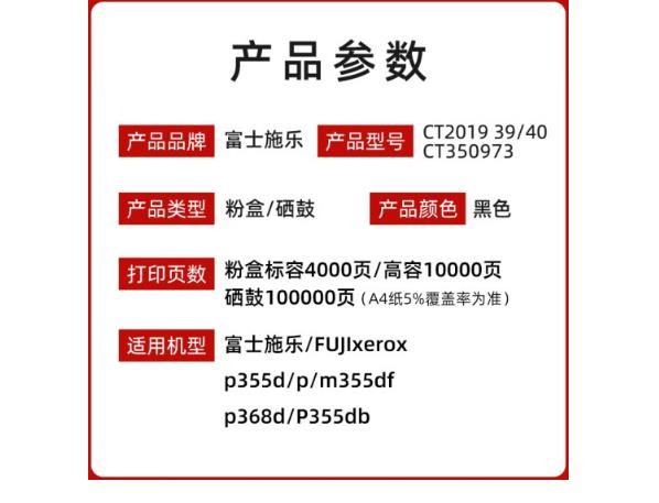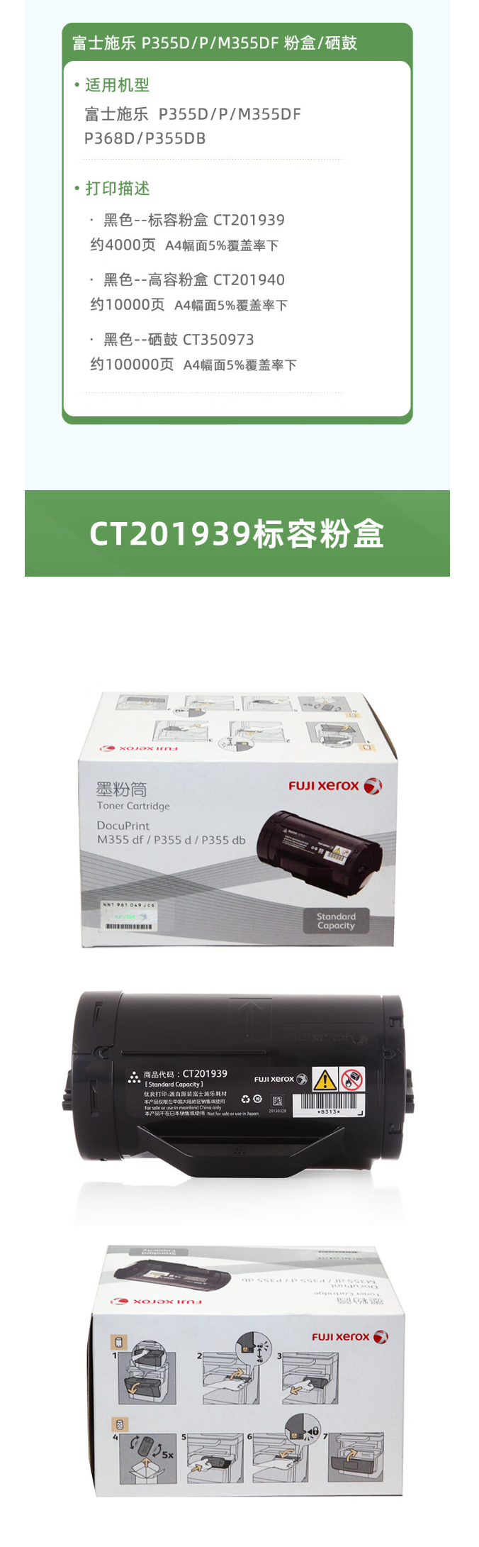 原装富士施乐P355d粉盒 P355db P365d P368d打印机墨粉碳粉感光鼓 施乐CT201939粉盒 低容量 4000页