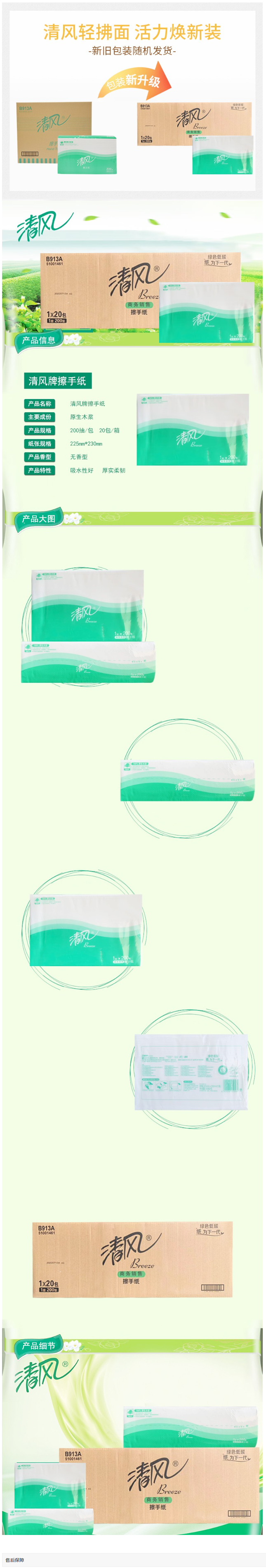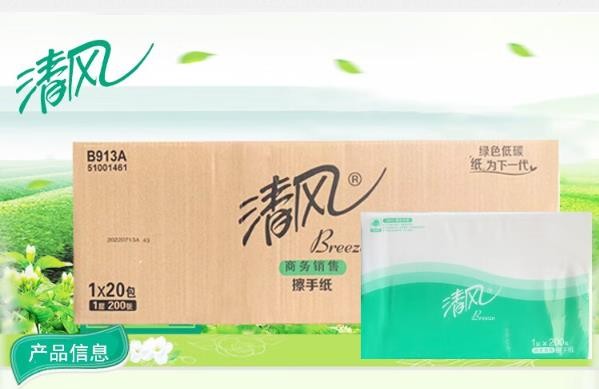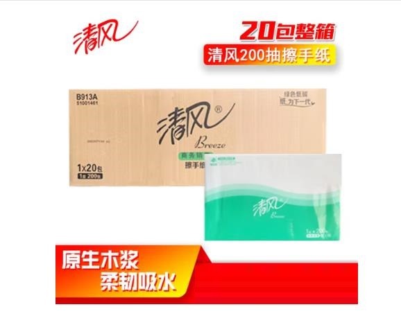 清风三折擦手纸B913A干手纸吸水纸酒店商务公用纸巾200抽*20包/箱