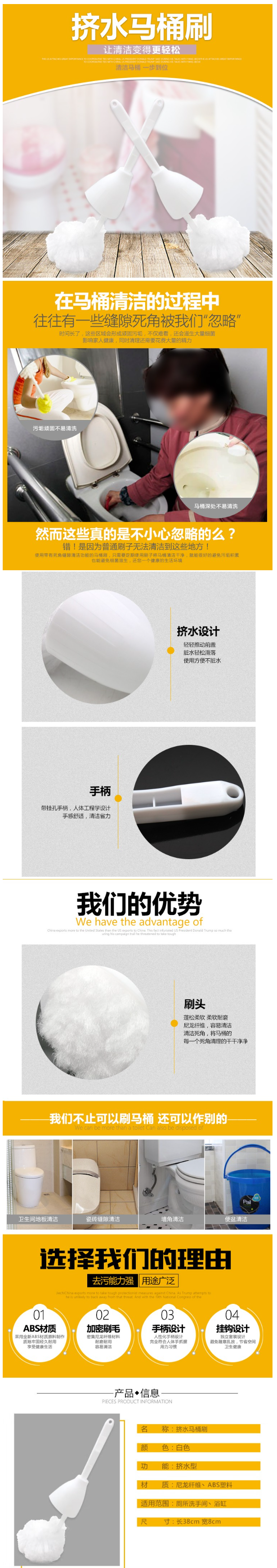 欧丽家洗马桶刷子无死角挤水棉刷卫生间坐便软毛清洁刷厕所刷长柄 不挤水海绵马桶刷