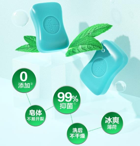 滴露(Dettol)健康香皂滋润倍护 薄荷冰爽 抑菌99% 肥皂 洗手洗澡男士女士儿童通用