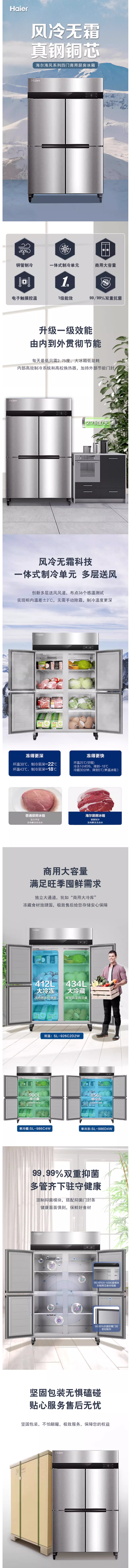 海尔商用四门厨房冰箱立式风循环双温冷藏冷冻不锈钢冷柜冰柜SL系