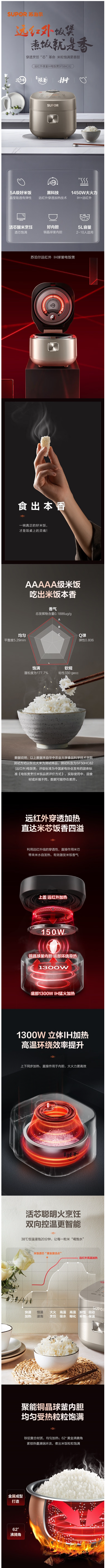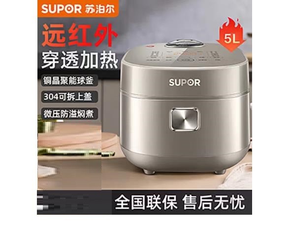 苏泊尔(SUPOR)5L电饭煲远红外穿透加热铜晶球釜IH电磁加热多功能家用智能电饭锅2-10人适用 SF50HC82 流光金色