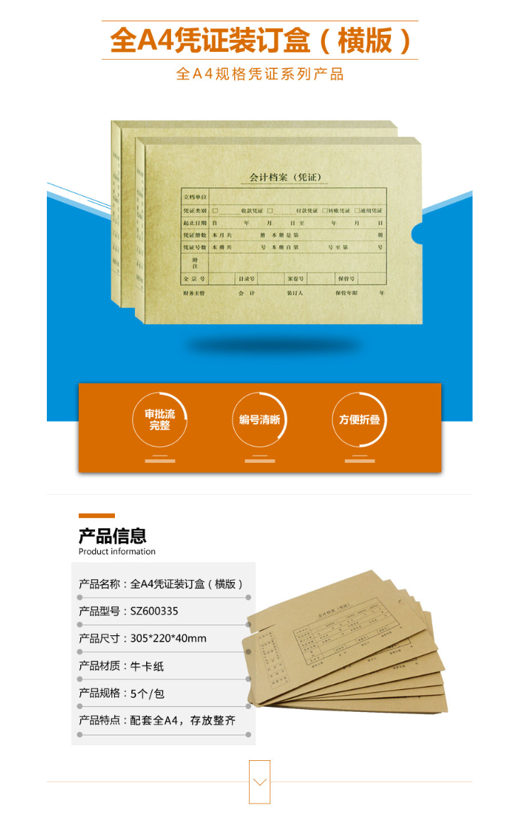 西玛(SIMAA)A4凭证盒 单封口进口674g牛卡纸 305*220*40mm a4记账凭证纸会计档案凭证盒SZ600335