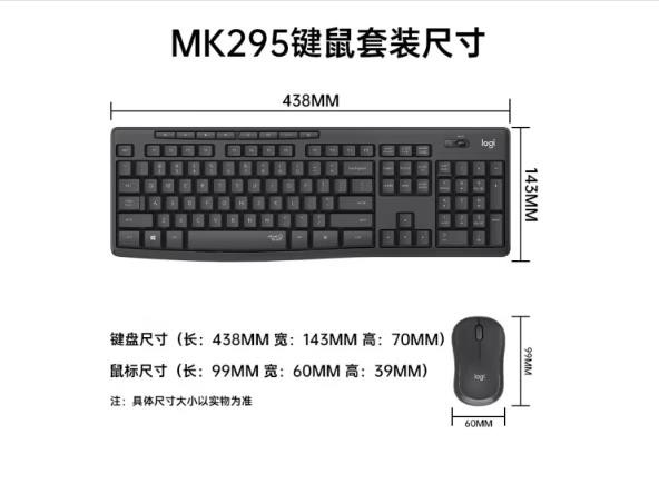 罗技(Logitech)MK295无线键鼠套装 办公轻音键盘鼠标 办公笔记本适用 企业采购 公司礼品 MK295 黑色