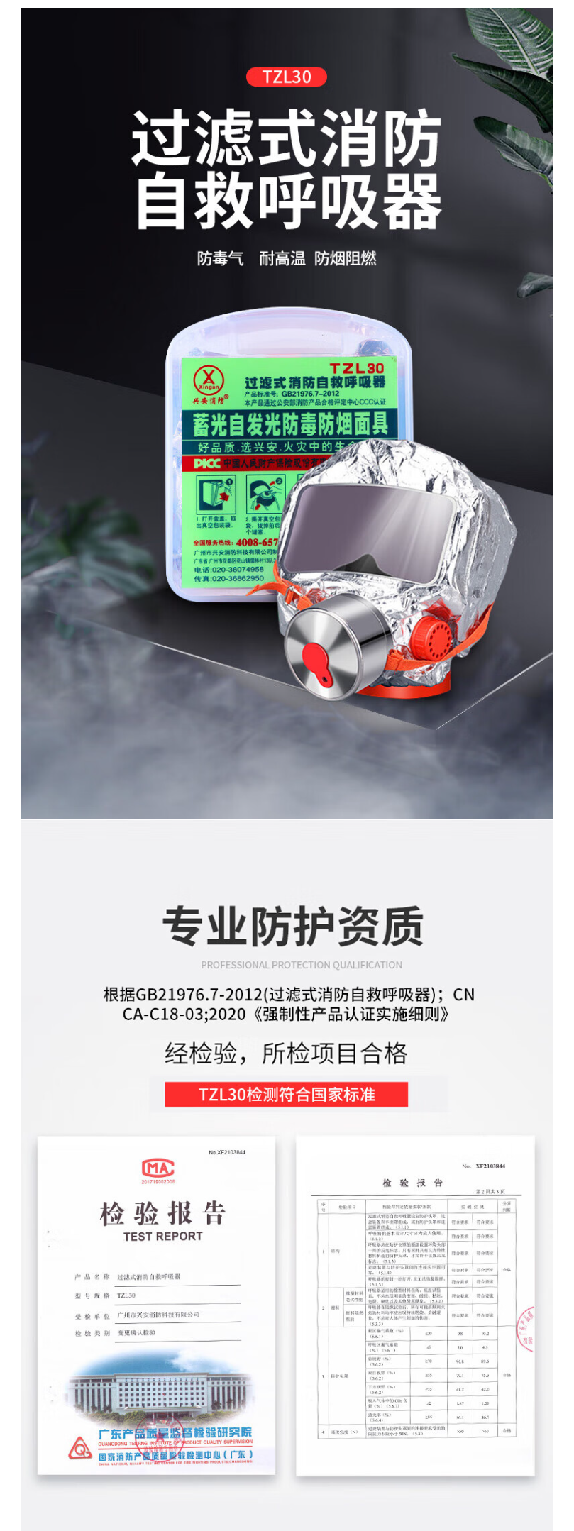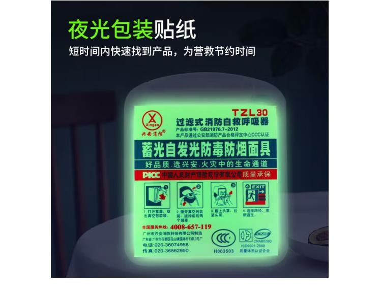 兴安消防面具防毒防烟面罩过滤式消防自救呼吸器火灾逃生硅胶透明夜光款透明盒-成人硅胶+封面夜光